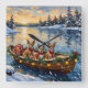 Chihuahua Christmas Boat Holiday Square Wall Clock