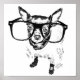 A cute black and white Chihuahua dog breed wearing glasses. Chihuahua drawing graphic illustration.