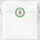 An image of an adorable little Chihuahua dog wearing a red and green pattern winter scarf is at the centre of this Holiday sticker. The image is framed in a circular green border which contains your custom text in white. Perfect for Christmas cards, correspondence, and gift packages.