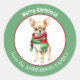 Chihuahua Dog in Red and Green Christmas Scarf Classic Round Sticker