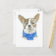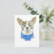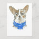 A handsome Chihuahua poses in his best blue harness for this elegant watercolor portrait from ww.YourDogPortrait.com, by Diane Heller.