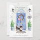 Announce your new address with our stylish announcement featuring a long hair Chihuahua, blue front door, welcome mat, slate sign, topiaries and a floral wreath set on a grey brick background.
