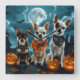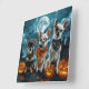Unleash the spooky spirit with this eerie Halloween design featuring a pack of dogs under a dark, moonlit sky, surrounded by flying bats and glowing pumpkins. Perfect for those who love a touch of frightful fun with their furry friends!