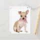 Aww...who can resist the sweet face of a Chihuahua puppy dog? This fun canine postcard features an image of a diva Chihuahua puppy dog with a pink scarf highlighted against a crisp white background.