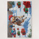 Chihuahua Running in Snow with Christmas Hat Jigsaw Puzzle