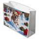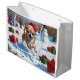 Chihuahua Running in Snow with Christmas Hat Large Gift Bag