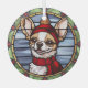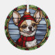 Elevate your holiday decor with this exquisite stained glass Christmas ornament. Crafted with meticulous attention to detail, this ornamental masterpiece captures the essence of canine charm. Its vibrant colours and intricate design evoke a sense of warmth and joy, adding a touch of elegance to your tree. Handcrafted with love, this timeless piece is a perfect gift for dog lovers and enthusiasts alike. A must-have for Christmas enthusiasts, stained glass ornaments, pet-themed decorations.