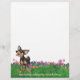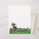 Animal Parade Chihuahua Dog Coordinating Personalised Stationery and Accessories features our original art of a cute black and tan Chihuahua dog character standing in a grassy yard with a textured blue and purple sky with a playful wavy purple border. This fun pet art, painted by our talented children’s illustrator, Traci Van Wagoner, is perfect Chihuahua lovers, dog lovers, and humourous animal art lovers of all ages. On many of our whimsical small dog stationery set accessories you'll find this cute dog coming and going with the his head on one side and this tail on the other. Join the Animal Parade and bring a smile to the face of someone you love with a gift of our cute coordinating and personalised Chihuahua dog stationery gift sets. Woof!