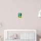 Cute watercolor of Chihuahua in Hawaiian shirt surfing on a tennis ball themed surfboard, with greens and blues