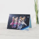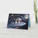 A dog Valentine's Day card featuring a Chihuahua couple in a flying saucer going to the moon.