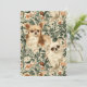 Charming design featuring fawn and white coated long haired Chihuahuas in a flower garden inspired by the style of William Morris.