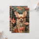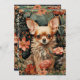 Charming design featuring a cute fawn coated long haired Chihuahua in a flower garden inspired by the style of William Morris.
