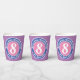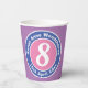Commemorate a 8th birthday with a paper cup which is decorated with the name of the recipient, as well as their age, and date of birth.