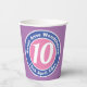 Commemorate a 10th birthday with a paper cup which is decorated with the name of the recipient, as well as their age, and date of birth.