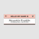 This badge looks professional and it's in keeping with my branding. The magnetic attachment is strong and stays in place all day. The quality of the materials and the colors were exactly as pictured. I couldn't be happier! The printing is clear and easy to read