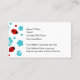 Daycare business card template in bright and fun design including cute ladybugs, flowers, and hibiscus flowers in turquoise, Red, and wbite. Highlights your company name on the front and displays your daycare details on the flip side. Designed as a daycare or babysitting design.