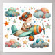 Child Flying a Propeller Plane Whimsical Nursery Poster