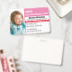 This child identification card is perfect for your child. It contains pink colouring, along with black text on the front for address, stats such as height, weight, blood type and date of birth. There is also room to add emergency contact numbers and names. Replace the template image with that of your child as well!