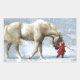 Child Leading A Horse In The Snow Rectangular Sticker