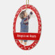 A festive oval shaped Xmas decoration, with a white snowflake and star filled background which frames a two photo template and templates for your personalised message or short verse. CUSTOMIZE IT - Add the name of your daughter, son, niece or nephew and the dates that he or she was part of your family for. IDEAL AS - Stocking stuffers for friends, family, couples and loved ones who have lost a beloved child to an illness or tragic accident.