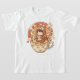 100% cotton so perfect for summer, It is a nicely designed t-shirt, the fabric is soft and the seams finished well, the body of the t shirt has no side seams. I bought a medium size for my two grandsons, aged 9 and 8 it will be slightly big on them but I would rather that than too small