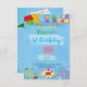 A birthday invitation filled with bright and cheerful colours, designed to reflect joy and fun. Vibrant colours like sky blue, pink, and yellow decorate the invitation, with cute illustrations of children's toys adding a touch of innocence and happiness. This makes the invitation perfect for celebrating the best moments with loved ones. An unforgettable invitation for an atmosphere full of joy and laughter.