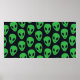 Childish seamless pattern with aliens faces ufo poster