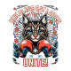 Grinning cat wearing boxing gloves with the phrase "Childless Cat Ladies Unit" - Available in many sizes and styles.