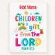Children Are a Gift from the Lord | Personalised Kids' Spiral Notebook. 🎨 Personalise the cover by adding your child's name at the top—making this notebook uniquely theirs! Choose the inside paper type: Practice lines for beginner writers or dual sketch and practice for doodling/drawings, and writing. Great for: Homeschooling, Sunday school, Travel entertainment, Quiet time, and Creative Bible learning. Makes a beautiful keepsake. Choose your favourite spiral binding colour.