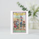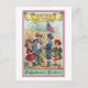 A group of children are preparing to march in their very own Fourth of July parade. They are carrying umbrellas and brooms in lieu of rifles. One girl is playing a drum, a boy holds up the American flag and another boy dressed in a military outfit holds a sword in this vintage patriotic postcard from 1909.