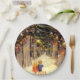 Paper plates with a vintage Christmas scene of two little children and their dog walking through the forest at night with Christmas lights sparkling from the trees lighting the way.
