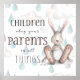 Sweet poster with an adorable little bunny, a clouds & raindrops background, and the bible verse, "Children obey your parents in all things" taken from Colossians 3:20. Would look nice in a new baby's nursery. Designed by Simply Scripture by Robin.