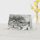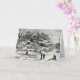 A vintage Victorian inspired black and white winter scene with children playing in the snow on a 5" x 7" greeting card.