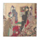Children Playing in the Snow under Plum Trees Ceramic Tile