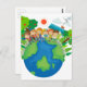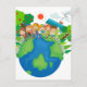 Children standing around the world postcard