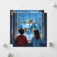 Children peeking out the window watching Santa's sleigh on a neighbor's roof. A sweet vintage nostalgic feeling we can all remember from our youth. On the bacxk is a holiday poem that you can leave, edit or change and add your own names.