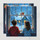 Children Watching Santa's Sleigh Christmas Holiday Card