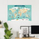 World map with illustrations for kids. You can find famous places, animals, name of countries, seas, oceans, and lakes. You can add your kids name to the banner to personalise the map. For example: Andrew's World Map or Sophie's World. :)