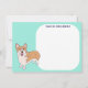 Kids can send their own message of thanks with these corgi dog thank you cards. Use the fill in the blank field to easily customise the text at the top of the cards. There's space for children to write their own message, make a drawing or dictate their thank you message to Mum or Dad. These cards feature a cute illustration of a Pembroke Welsh Corgi dog against a mint green background. The back of these flat panel cards has a matching Corgi pattern.
