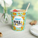 Modern pizza themed birthday party paper cups, with a PIZZA PARTY logo and customisable text where you can add your own name