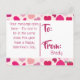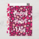 This cute and colourful postcard is perfect for school Valentine's. The front has an all over print of hearts, hearts and more hearts in many tints and shades of pink. It has white typography that says "Happy Heart Day". The back has space for your child's customised message as well as the name of your child. All your little one needs to do is fill out a name in the To section and deliver the cards.