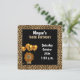 Cute black and golden hues with a cheetah print border and big cat with balloons on this jungle safari themed birthday party invitation with customer age.