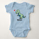 Tyrannosaurus Rex from a child's point of view. Cute green drawing of a T-Rex with a red heart above it. The child's name can be changed in the edit section of the product.