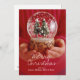 Child's hands holding snow globe holiday card