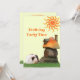 A cute brown and white guinea pig and a mushroom house are on the front and back of the child's birthday party invitation. Personalise the text fields for the front and back using the template fields, remove text or click customise to select a typeface style, colour, and size you like. If you like it but don't need it now, follow the TheAspenStand store to easily find the invitation later.