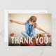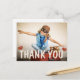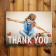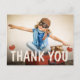 Cute child's "Thank you" photo postcard with cream-coloured text and red hearts. Personalise with your child's photo and add your own text to the back. Great for birthdays or other special occasions.