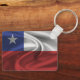 Keychain with the flag of Chile in wavy fabric style design. This design features the Chilean flag colours and design with a beautiful waving material textured effect. This flag design is a great way to show you are proud to be from Chile.