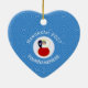 Angel dressed in the red, white, and blue flag of Chile on this heart shaped ceramic ornament for your Hanukkah decor this holiday season. Designed for families with multiple religions, the Chilean angel flies in the center of a circle of white squiggly squares. A background of blue squiggly squares completes the Hanukkah theme. Add a name to personalize. Add the year to customize. Or, add your own text.