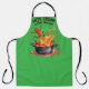 A happy chili or chile pepper jumps into a boiling, flaming stock pot on this kitchen apron for men or women, personalized with your text and color scheme, perfect for looking awesome when cooking in the kitchen or at the grill.