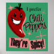 I Prefer Chili Peppers :: Cool vintage advertising appeal to this chili pepper shirt design saying, I Prefer Chili Peppers They're Spicy! A very humorous retro chili pepper graces the design and stars give it a great vintage advertisement appearance. This is a must own design for any fan of chili peppers.